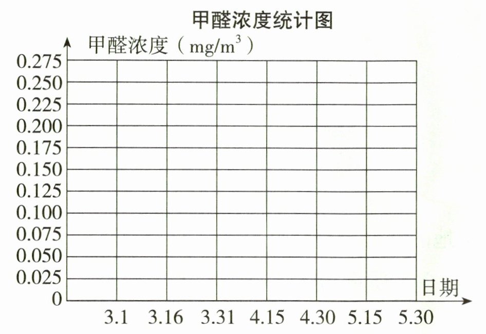 (2) ① 3 月 1 日的甲醛浓度最高; ②室内甲醛的浓度在逐渐下降。(答案不唯一)