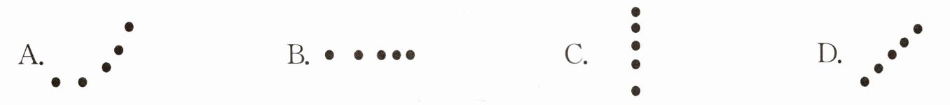 1. 下图是利用每秒闪光 10 次的照相装置拍摄到的四个物体的闪光照片(图中的黑点表示物体),其中可能受到平衡力作用的物体是(