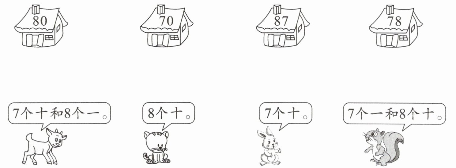 【解析】:要找出个位上是4的数,就看每个数的个位数字是否为4;要找出十位上是4的数,就看每个数的十位数字是否为4。