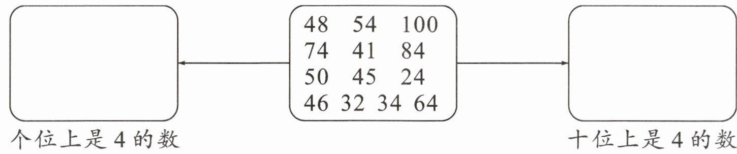 个位上是4的数:48的个位是8,54的个位是4,100的个位是0,74的个位是4,41的个位是1,84的个位是4,50的个位是0,45的个位是5,24的个位是4,46的个位是6,32的个位是2,34的个位是4,64的个位是4。所以个位上是4的数有54、74、84、24、34、64。