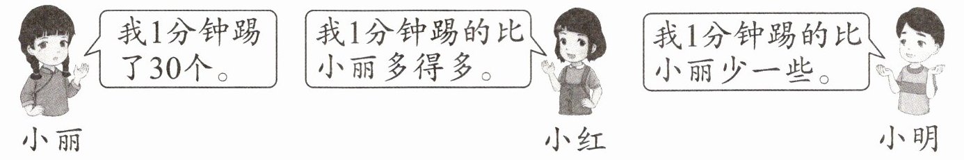 三个小朋友一起踢毽子。小红和小明1分钟各踢了多少个?