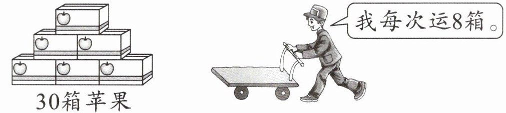 【解析】:王叔叔每次运8箱苹果,共有30箱苹果。计算可得30箱苹果运3次后还剩6箱(30 - 8 - 8 - 8 = 6),剩余的6箱仍需再运1次,因此总共需要4次才能运完。