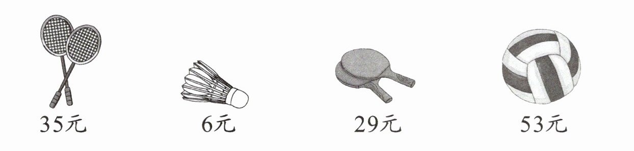 (1) 一副羽毛球拍比一个羽毛球贵多少元?