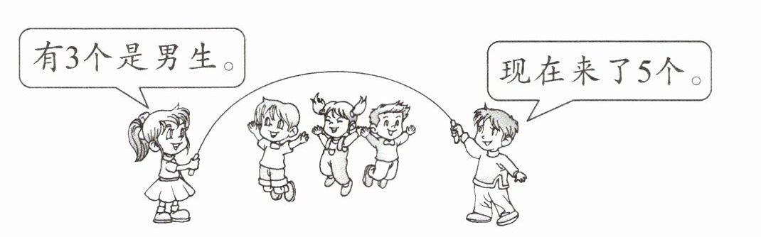 【解析】:题目要求计算还有几个人没来,需要用要来的总人数减去已经来了的人数。已知要来跳绳的总人数是11人,而“有3个是男生”属于无关信息,应忽略。正确的已知条件是来了5个人,所以没来的人数为11减去5。