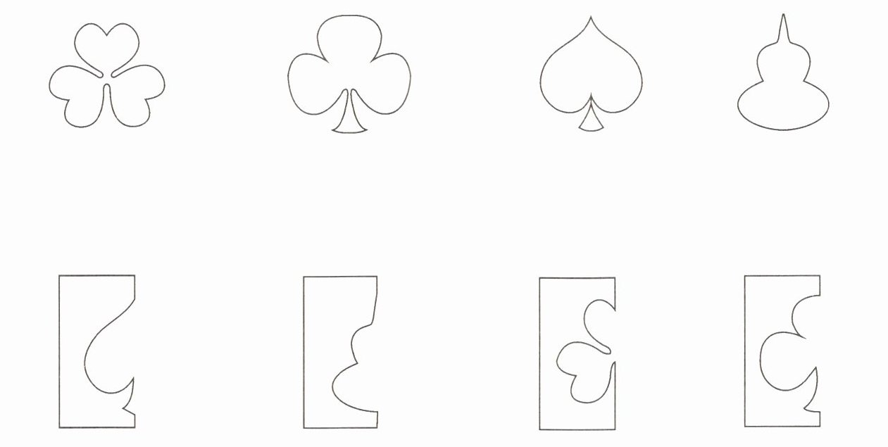 训练题3 下面的图形是从哪张对折后的纸上剪下来的? 连一连。