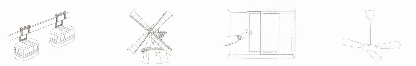 1. 下列现象,是平移的在( )里画“√”,是旋转的在( )里画“○”。