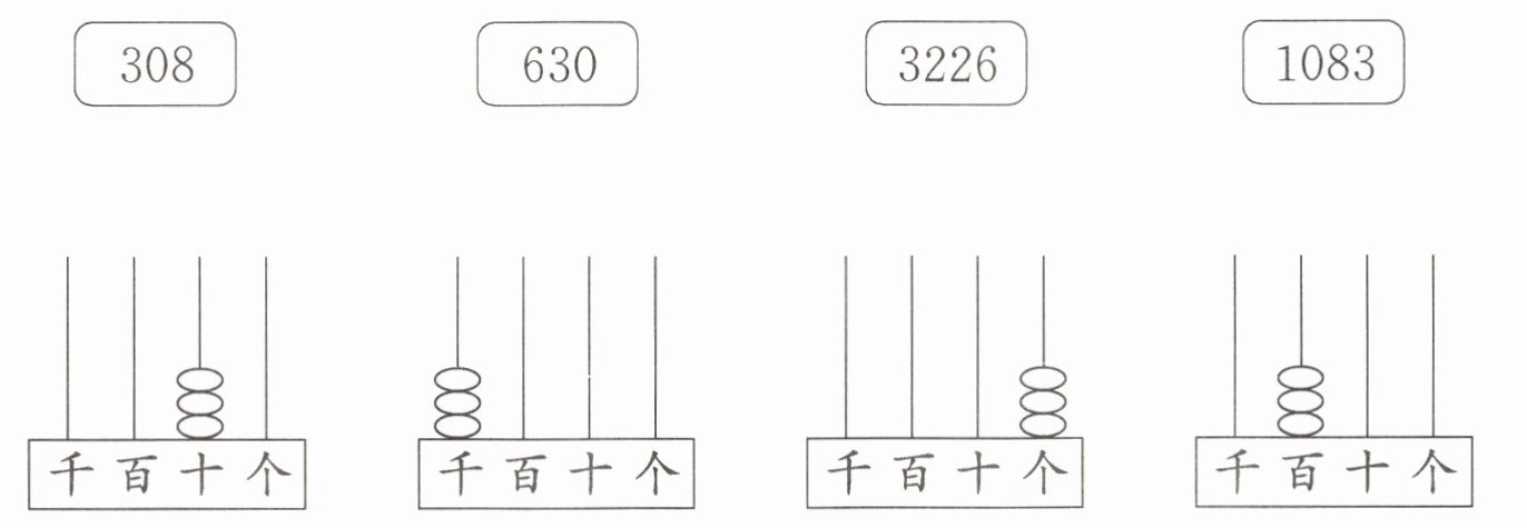 1. 想一想,每个数中的“3”各表示多少,用线连一连。