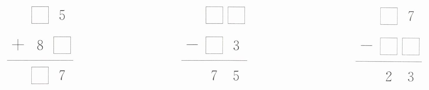 三、从1~9中选择合适的数字填入下面的$□$中。(每个算式中的数字不能重复)