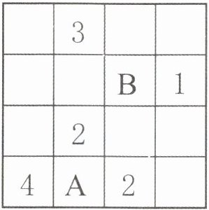 1. 在下面的方格中,每行、每列都有1~4这四个数,并且每个数在每行、每列都只出现一次。B应该是几?你能将方格填完整吗?
