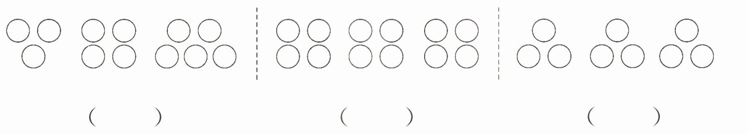 1. 把12个$◯$平均分成3份,在分得对的下面画“√”。