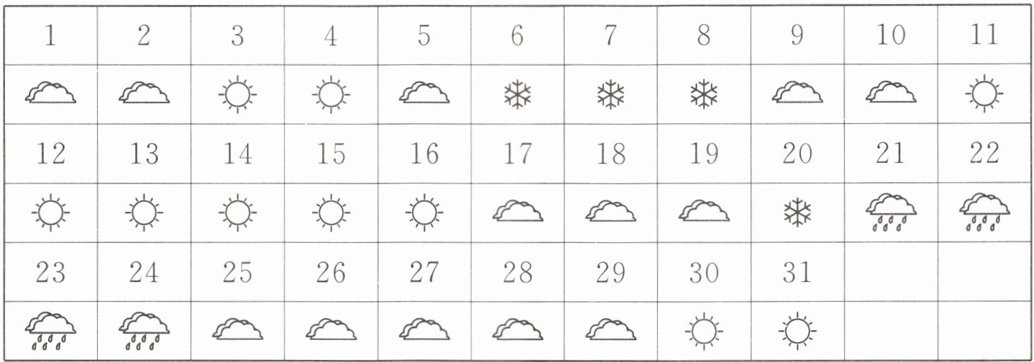 阴天比雨天多多少天?13 - 4 = 9(天)