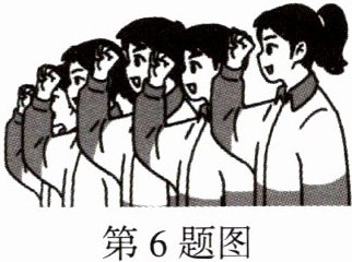 6. 如图所示,新团员们面对鲜艳的中国共产主义青年团团旗,高举右手,紧握右拳,郑重地进行入团宣誓,宣誓声整齐划一、响彻云霄.下列说法正确的是( )