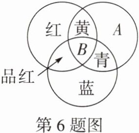 6. (教材活动改编)小明在学习光的三原色后,找来能分别发出光的三原色的手电筒,对课堂所学光的三原色原理进行验证,他用手电筒将不同颜色的光投射到白墙上,得到如图所示的图案,其中A是光,B是光.