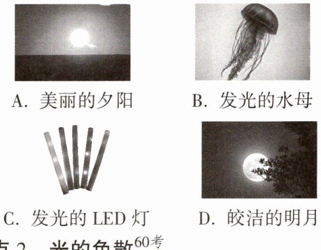 1. (教材图改编)下面的物体中,属于人造光源的是 ( )