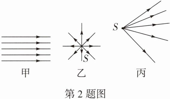2. (教材图改编)物理学中把光线互相的光称为平行光,如图所示为小华学习本节知识后的学习笔记,其中为平行光的是(选填"甲""乙"或"丙").