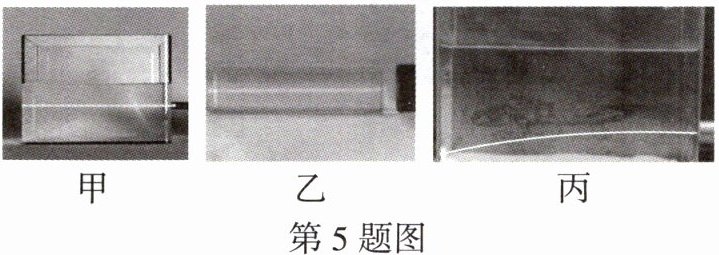 5. (教材活动改编)为了研究光是怎样传播的,小明用激光笔先后将一束光射到盛水的玻璃水槽和玻璃砖中,实验现象如图甲、乙所示,据此可初步得出结论:光在水和玻璃中沿传播;接着通过玻璃管将浓盐水缓慢导入水槽底部,静置几分钟,便出现了图丙所示现象,将盐水搅拌均匀后,光路变得与甲图相同.由此可以得出,光在同种介质中沿直线传播.