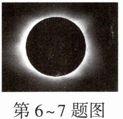 小明记录了第一次观看日全食的过程,如图所示是他拍下的日全食瞬间的照片.请完成第6~7题.