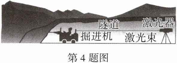 4. 如图所示,工人们在挖掘隧道时利用激光束引导掘进机,可以使掘进机沿直线前进,以保证隧道的方向不发生偏差,其原理是光的.请再列举一个生活中对于该原理的应用: