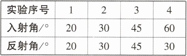 (3)多次改变入射角度,并记录入射光和反射光的光路,取下纸板,测出入射角和反射角的大小,并将数据记录在下表中.其中错误数据是第 次实验的数据,错误原因可能是将反射光线与 的夹角当成了反射角.
