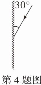 4. (教材图改编)某一时刻小明发现太阳光以与竖直面夹角为 30°的方向斜射在大楼的玻璃幕墙上,其光路如图所示,请在图中画出该入射光线的反射光线并标出反射角的度数.