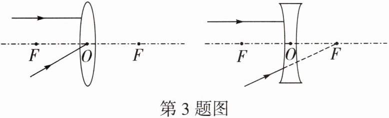 3. 请你根据入射光线将下列透镜的光路图补充完整.