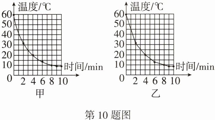 10. (教材反思提升第5题改编)如图所示是两位同学根据同一杯热水自然冷却的过程描点作出的温度-时间图像,下列相关说法错误的是 ( )