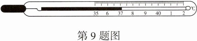 9. (教材练习第2题改编)测量体温是检查身体是否发热的一种方式.图中体温计的量程为______℃,分度值为______℃,此时体温计的读数是______℃.该体温计______(选填“可以”或“不可以”)离开人体进行读数.