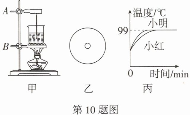 10. 如图甲所示是实验小组探究"水在沸腾前后温度变化的特点"的部分实验装置.