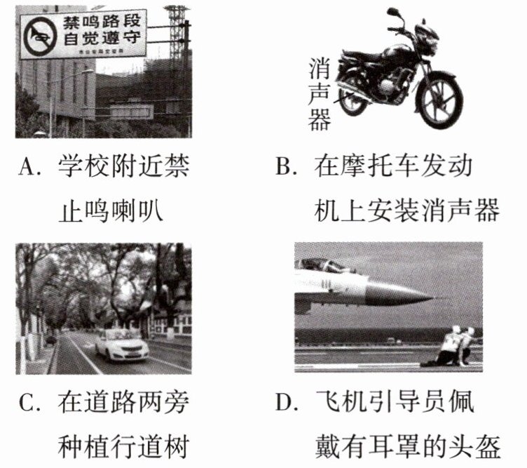 7. (教材图改编)如图所示的四种措施中,在传播途中控制噪声的是 ( )