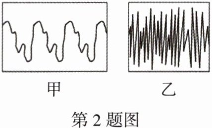 2. 如图所示为小明用手机声波软件检测到不同声音的波形图,从物理学角度看,噪声是指发声体做 振动时发出的声音,下图中 (选填“甲”或“乙”)是噪声的波形图.