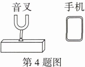 4. 如图所示,音叉与手机的位置保持不变,敲击音叉后,手机内置分贝测试仪软件测出音叉发出的声音从40 dB逐渐变为0 dB,上述过程中,音叉的振幅 ( )