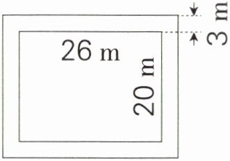 3. 有一个长26米,宽20米的长方形花坛,如果在这个花坛的四周修3米宽的小路(如图),小路的面积是多少平方米?