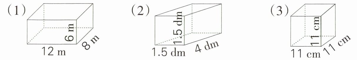 所以(1)的体积是$576m^{3}$;(2)的体积是$9dm^{3}$;(3)的体积是$1331cm^{3}$。
