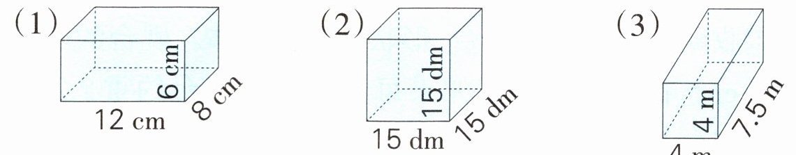 所以(1)的体积是$576cm^{3}$;(2)的体积是$3375dm^{3}$;(3)的体积是$120m^{3}$。