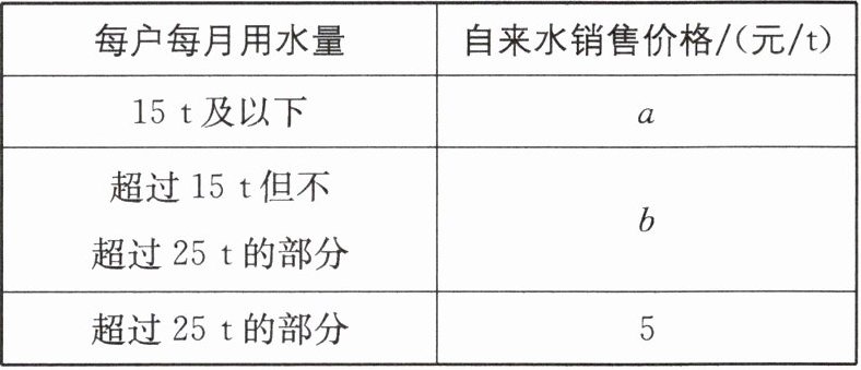 (2)小王家今年 4 月份用水 21 t,共缴纳水费 52.5 元,邻居小李家 4 月份用水 27 t,共缴纳水费 76.5 元,求 a,b 的值;