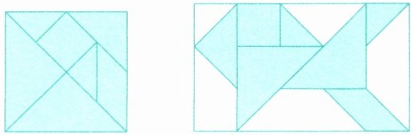 5 豆豆用一副总面积为144平方厘米的七巧板拼图,他拼出的图正好可以放在下面右边的长方形里。你知道这个长方形的面积是多少平方厘米吗?