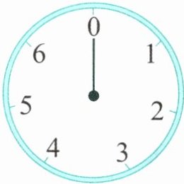 5 有一只怪钟(如图所示),一圈有7个格子,格线上按顺时针方向依次标着0~6。钟面上只有一根指针,指针每分钟跳一次,一次顺时针方向跳3个格子(例如从2跳到5)。开始时,指针指向0。过1个小时,指针指向哪个数字?