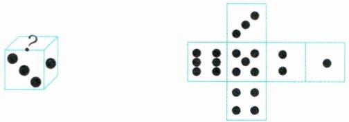 下图是一个正方体和它的展开图。这个正方体“?”处应该是几个点?