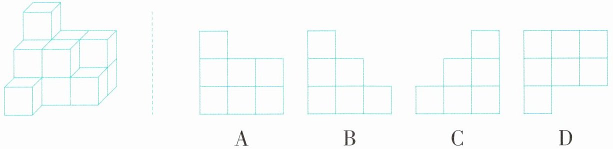 7 下面左边的物体是用一些同样大小的小正方体拼搭而成的,这个物体从前面看到的图形是(