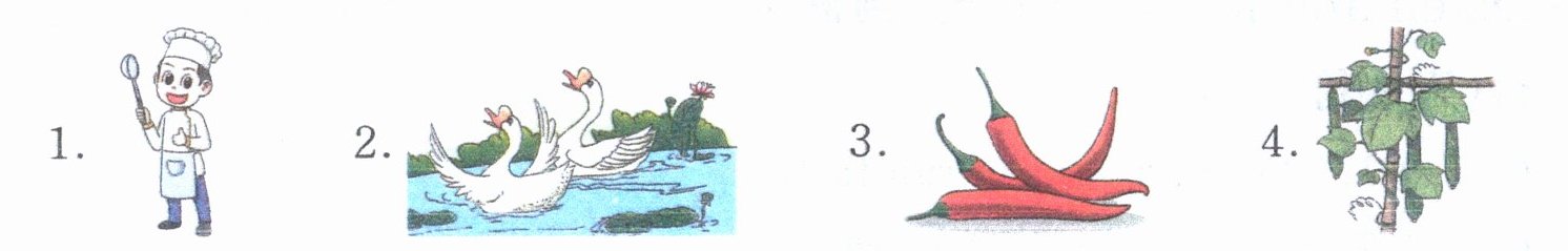 二 Listen and judge. 听录音,判断下列图片与你所听到的内容是(T)否(F)相符。(听两遍)
