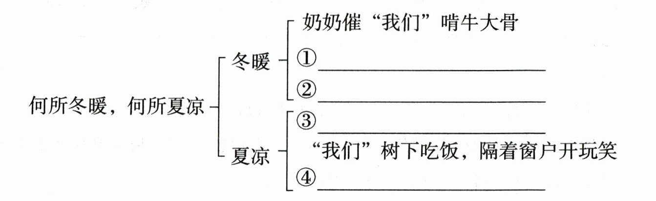 何所冬暖,何所夏凉冬暖奶奶催“我们”啃牛大骨①______②______夏凉③______“我们”树下吃饭,隔着窗户开玩笑④______