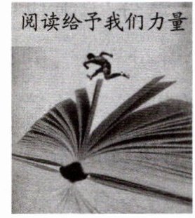 (1)为增加同学们阅读经典的动力,经典阅读组选择了下面这幅作品作为宣传海报,请用简洁、通顺的语言概括这幅公益海报作品的寓意。(3 分)