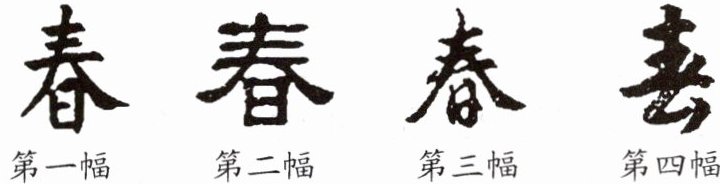 (2)板报的正中位置要书写一个“春”字,请你从下面四种书体中选择一种你认为最合适的,结合该书体特点简要阐述选用的理由。(3 分)