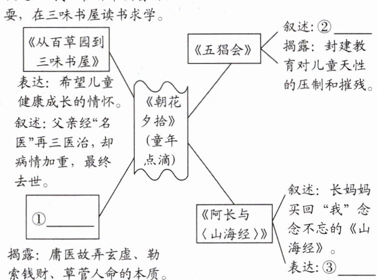 2. 阅读了《朝花夕拾》后,小语对内容进行了梳理分析,请你一起探讨。(10 分)