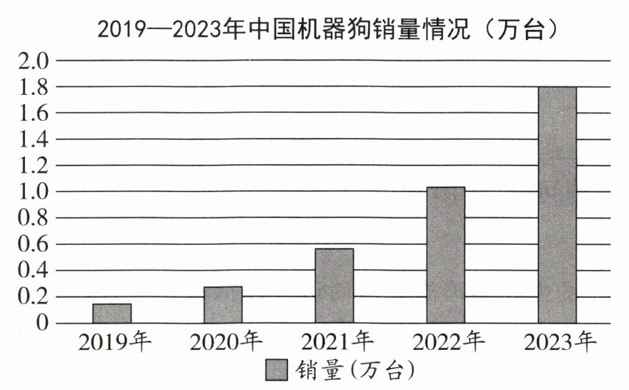 C. 2019—2023 年中国机器狗销量逐年增加,并且 2022—2023 年增长迅速。