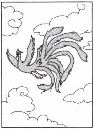 形象描绘:从西边飞来一只青鸟,只见它长着红色的脑袋,一双黑色的眼睛,忙着向汉武帝传报王母要来的消息。