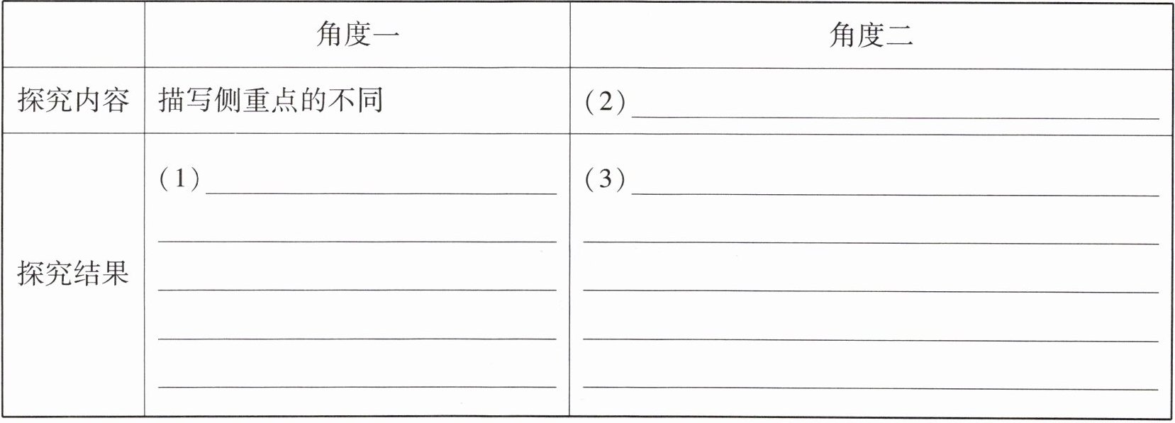 | 探究内容 | 描写侧重点的不同 | (2)______ |
