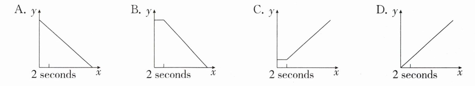 )38. Suppose(假定)“x” means the time people have to wait before the video begins and that “y” means the number of the people who choose to wait for the video to start playing. According to Paragraph 2, which of the charts below shows the relationship between “x” and “y”?(