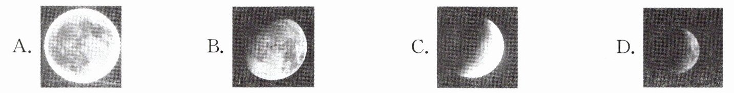 )35. Which of the following pictures shows the “gibbous” moon?(
