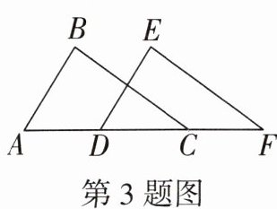 3. (黑白卷改编) 如图,点A,D,C,F在同一条直线上,AD= CF,AB= DE,BC= EF,下列结论不一定正确的是 (